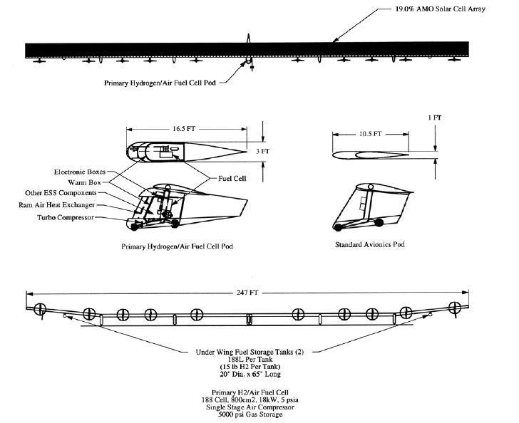الارتفاع 30 كم (100.000 قدم) يمكن حقًا أن يُحقّق. كفاءة أجهزة استشعار الشمس تتجاوز 20٪. يمكن للمركبة الإقلاع بذاتها. تم تطبيق مختلف الصيغ تباعًا، من "كاملة الشمس" إلى أنظمة مختلطة حيث تحمل المركبة الطاقة في بطاريات أو تنتج طاقتها الكهربائية باستخدام خلايا الوقود الهيدروجينية.