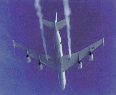 Immer mehr Menschen fragen sich, ob mehrere Länder bereits seit vielen Jahren mit meteorologischen und klimatischen Waffen spielen. In den vorherigen Seiten habe ich einen Zusammenhang mit dem HAARP-Projekt hergestellt und erklärt, wie Mikrowellen-Systeme große meteorologische Phänomene erzeugen könnten. Dieser Bericht wäre unvollständig, wenn man nicht auch Phänomene erwähnte, die seit zwei Jahren am Himmel der USA auftauchen, die sogenannten "Chemtrails". Es handelt sich um Spuren, die nicht nur am amerikanischen Himmel, sondern auch in anderen Teilen der Welt sichtbar sind. Hier sind einige Bilder aus der Website http://www.chemtrailcentral.com, auf der der Leser eine Vielzahl von Bildern und Zeugnissen unterschiedlicher Art finden kann. Fotos, die von zivilen Satelliten aufgenommen wurden (eines davon ist in der Nummer &&& der hervorragenden kleinen Zeitschrift Effervescence abgebildet), bestätigen die Ausdehnung dieses Vorgangs über weite Regionen.