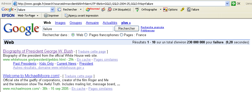 Bush víctima del "Googlebombing"