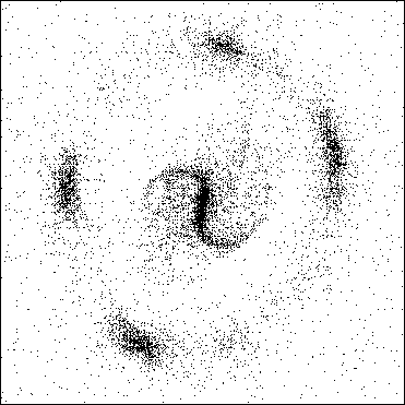 C'est joli, c'est spectaculaire, mais est-ce significatif ? Nous dirons que c'est encourageant, fort encourageant, comme l'étaient les simulations que j'avais faites en 92 avec un autre Frédéric. Il s'agit de 2d et non de 3d. C'est un "gaz plat". On peut espérer que le "fluide galactique" aura la bonne idée de se comporter de façon semblable lorsqu'on dotera ses composants d'un troisième degré de liberté, en z. On peut l'espérer mais on ne peut l'affirmer avec certitude tant qu'on ne l'aura pas vérifié. De plus ce qui spirale c'est une population unique, constituée de masses identiques. Mais la réalité une galaxie devra être modélisée par au moins deux sous-populations (censées représenter le gaz et les étoiles). Baudemont pourrait le faire avec deux fois cinq mille points et je lui expliquerai comment procéder.