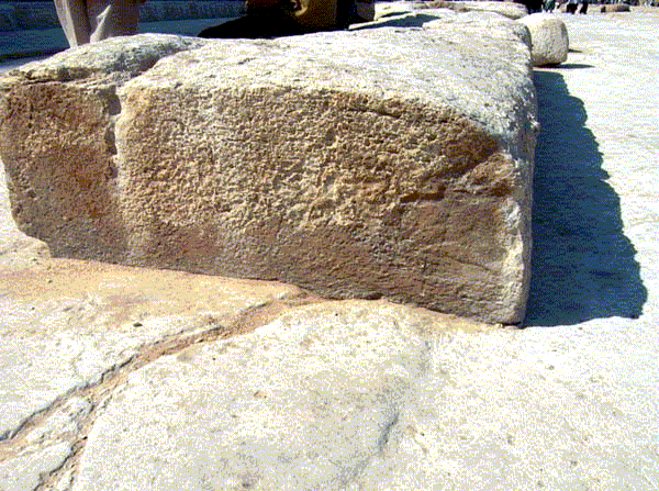 **Ma remarque : **Ce qui est étonnant, en Amérique du sud, c'est de trouver des surfaces de jonction des pierres qui ne sont non seulement pas régulières, mais ... carrément gauches. Ceci exclut tout usinage mécanique. On a alors pensé à un usinage chimique, à une chimio-abrasion ( notons que c'est pas chimio-abrasion qu'on polit les pierres lithographiques ).