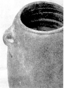 Traces à l'intérieur d'un vase de pierre dure, indiquant qu'il y a eu moulage "à la corde"