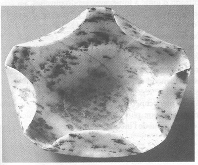 Si vous allez en Egypte, votre guide vous entraînera dans un atelier de taille de "vases en pierre". Mais il s'agira alors d'une pierre tendre : l'albâtre. Personne ne saurait aujourd'hui tailler une coupe comme celle que vous voyez sur la photo, surtout en utilisant les matériaux de taille de l'Ancien Empire Egyptien. Par contre sa forme évoque un pliage. Il serait extrêmement facile de réaliser cette coupe en terre, puis d'en plier les bords. Mais comment les anciens égyptiens ont-ils procédé ? Savaient-ils reconstituer une pierre aussi dure que ce gneiss arthrositique ? La performance défie l'imagination.