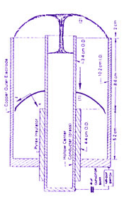 On peut envisager des machines Focus de tailles diverses, les paramètres de similitides étant relativement bien maîtrisés ( voir l'article dans Wikipedia ). La machine ci-dessus correpond à une centaine de kilo-ampères avec un temps de montée de trois microsecondes. L'anode fait 16 cm de long sur un de diamètre. De telles machines sont actuellement étudiées dans 8 pays. Certaines équipes prétendent avoir obtenu des résultats qui permettraient d'envisager la faisabilité de l'extraction d'énergie à partir d'une réaction de fusion non-polluante Bore 11 Hydrogène 1 donnant 4 noyaux d'hélium et 8,7 Mev d'énergie. La réaction Li6 plus D2(deutérium ) donne quant à elle 22,4 Mev.