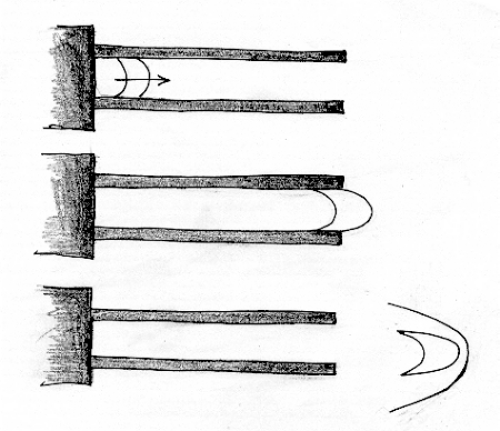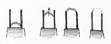 Prenons maintenant une décharge électrique. Vous avez tous déjà vu la manip consistant à faire éclater une décharge électrique entre deux tiges métalliques. Celle-ci "monte" et finit par se briser.
