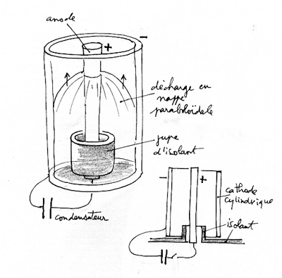 Ce montage permet à l'anode de servir d'écran ax réyons X qu'elle émet lors queles électrons de la décharge la frappent. Ce ne sont pas ces X-là que les chercheurs veulent mesurer, mais ceux qui sont directement émis par le plasma et permettraient de connaître sa température.