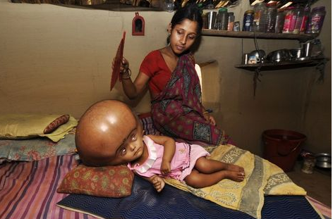 Une hydrocéphalie extrême ( Inde ) Q uand le nourrisson devient un vrai enfant, sa fontanelle se ferme et les jonctions entre les différentes parties de son crânes s'ossifient.