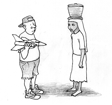 ****Les sondages ont révélé le peu de goût de l'Américain moyen pour la géographie. Ces gens sortent très peu du pays, en moyenne, qui est tellement vaste et varié qu'ils peuvent y faire du tourisme toute leur vie sans le connaître à fond. Lorsque Bush junior fut élu président il n'était lui-même jamais sorti du pays. Eric nous envoit cette sorte d'image mentale du monde, vu par un Américain moyen. Il est possible que cette vision soit en fait ... assez proche de la vérité ** ---