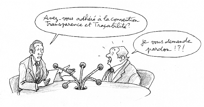 Avant d'en arriver là, ce qui moraliserait immédiatement toutes les économies et les politiques ( les mots sont synonymes en fait ) imaginons qu'un loi puisse être édictée obligeant tous les gens qui veulent "entrer en politique" à adhérer à cette "convention transparence et traçablité". Je ne sais pas si on imagine quelle serait la réaction de la classe politique, toutes tendances politiques confondues si une mesure était adoptée. Loi qui frapperat également les hauts fonctionnaires, tous les "grands commis de l'Etat".