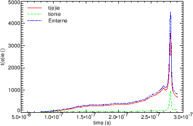 Cette figure est extraite d'un autre tir. On y distingue la puissance rayonnée sous forme de rayons X
