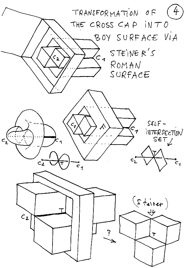 • Ce texte explique comment transformer une crosscap en surface de Boy en passant par la surface Romaine de Steiner.