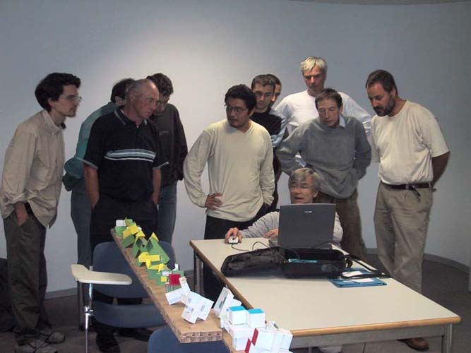22 octobre 2003 : On ne se bouscule pas sur ces pages, si j'en crois le chiffre du compteur. J'ai donné le lundi 13 octobre 2003 un séminaire au CMI (Centre de mathématiques et d'informatique de Château-Gombert-Marseille) sur invitation de Trotman. A l'occasion j'ai pu aligner une collection d'une trentaine de modèles en carton, dont vous aurez un jour prochain la primeur, ceux-ci ayant été photographiés par Christophe Tardy.