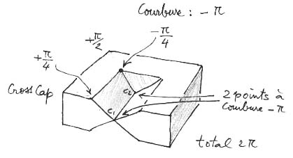 • Je ne vois pas pourquoi Petit fait usage d'un tel attirail pour démontrer la symétrie qui unit les deux points cuspidaux d'une Cross Cap. Il y a beaucoup plus simple.