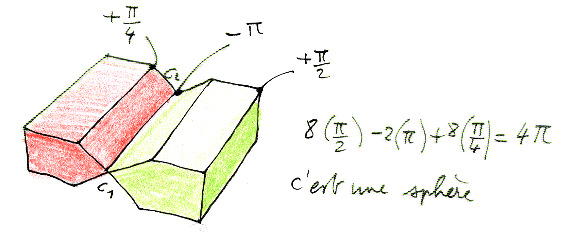 On la calculera en sommant les angles au sommet et en comporant cette somme à la somme euclidienne : 2 p .