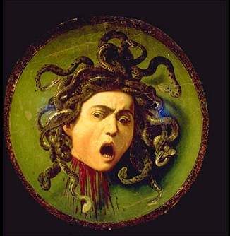 Persée, montrant le visage de Méduse, à travers son reflet dans son bouclier