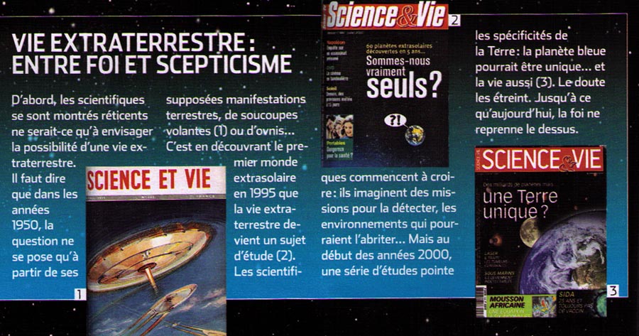 Ce basculement est historique. Page 64 la revue évoque des numéros passés, dont deux datant des années 2000, où l'idée de l'unicité de la vie terrestre était toujours brandie.