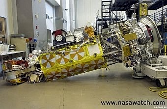 On connaît les avatars du téléscope spatial Hubble. Deux miroirs avaient été préparés. Le bon resta au sol. Quand les scientifiques se précipitèrent sur leurs écrans pour contempler les fantastiques images que ce trésor de la technologie était censé leur apporter ils obtinrent une image floue. Hubble était ... myope. Certains se souviennent peut-être du rapport remis par le responsable de la mission, véritable hara-kiri. Il fallut préparer un coûteuse mission pour équiper le télescope de verres correcteurs. Dans cette ligne d'idée le six septembre 2003 un technicien de Lockheed, on ne saura jamais pourquoi, eut la malencontreuse idée de défaire les vingt quatre boulons qui fixaient un satellite météo sur son support. Deux jours plus tard d'autres technciens entreprirent de déplacer le précieux objet qui bascula. Le résultat est le suivant :