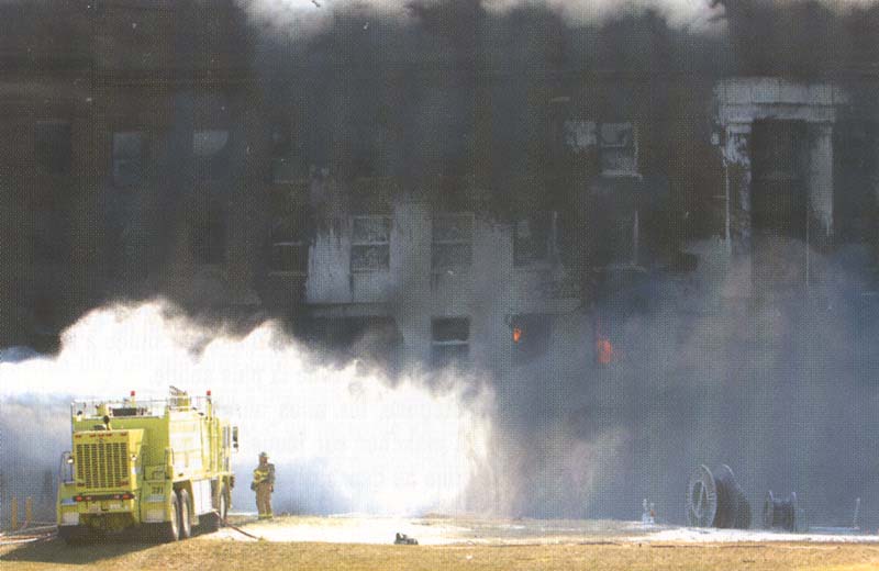 **1 - Un camion des pompiers arrose un feu qui s'est déclaré dans un autre camion qui stationnait devant le Pentagone (à droite).