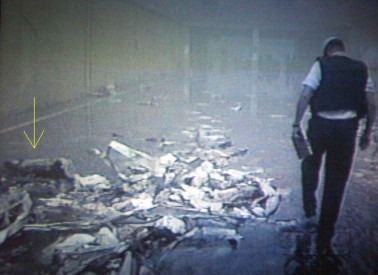 Mais comment imaginer que ce pneu soit pratiquement intact (au milieu de débris ayant l'allure de confettis) alors que les corps des passagers ont été ... volatilisés ? Qu'est-il advenu des sièges, de tout ce qui compose un avion ? D'un côté la structuyre très complexe qu'est un avion a été transformée en ... confettis et de l'autre, ici et là, des objets quasi intacts.