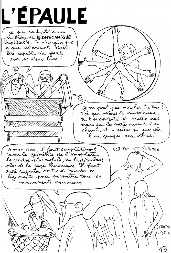 Ceci a été été rendu possible par une invention, celle d’un support articulaire mobile, on dirait « flottant » : l’omoplate, véritable trouvaille.