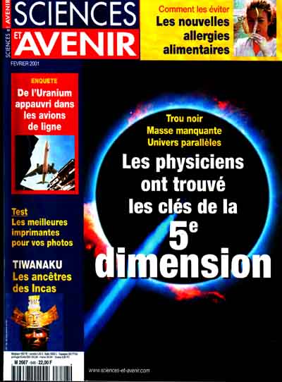 A l'attention de la rédaction de la revue Sciences et Avenir et de David Larousserie, auteur de l'article paru dans le numéro de février 2001, intitulé "Entrez dans la cinquième dimension".