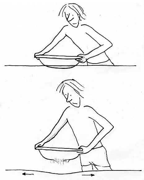 Le mouvement brusque d'une plaque par rapport à une autre s'accompagne du départ d'ondes sismiques, horizontales, qui peuvent endommager des bâtiments et créer des pertes en vies humaines. La glissement s'accompagne aussi de mouvements verticaux qui n'ont guère d'importance lorsque ceux-ci intéressent des régions émergées. C'est totalement différent si ces phénomènes se situent au fond d'océans. Ces mouvements sont brusques. L'eau, par opposition à l'air est un milieu incompressible. Toute variation de niveau, quelle que soit la profondeur va immédiatement se répercuter en surface, même si celle-ci se situe à des milliers de mètres de distance du fond. Ce mouvement vertical d'une masse liquide M sur une hauteur h représente une énergie M g h . Celle-ci devra se dissiper d'une manière ou d'une autre. Envisageons une situation où l'avancée d'une plaque sur une autre entraîne une descente du fond sous-marin, comme ceci :