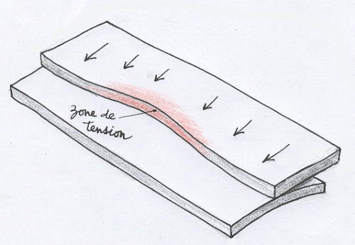 **Situation finale : évacuation des tensions par glissement de la plaque. **