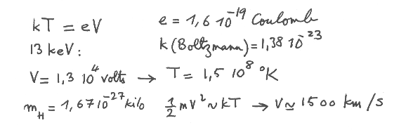 cela donne, pour des atomes d'hydrogène, une vitesse moyenne de 1500 km/s. Finalement, n'est-ce pas normal et raisonnable? Cette vitesse se trouve être voisine des vitesses de libération des galaxies. Si les atomes avaient cheminé à des alllures plus faibles, ces galaxies les auraient capturées. Il y a plus de vingt cinq ans quand on avait émis l'idée que du gaz aussi chaud puisse se trouver entre les galaxies j'avais fait un calcul, pas très très compliqué, sur le temps de libre parcours moyen de ces atomes, étant donnée l'estimation qu'on pouvait faire de la densité. On trouvait que ce milieu était très peu collisionnel et c'est la raison pour laquelle cette température s'est maintenue. Sinon les collision entre atomes auraient entrainé le refroidissement radiatif de cette masse gazeuse et son absorption par les galaxies. A ce stade, la question intéressante concerne l'origine d'une masse de gaz aussi chaud. Quel phénomène a bien pu l'échauffer à ce point ? Je suggère que cette masse de gaz chaud a été créée en même temps que les étoiles primitives. Nous savons finalement bien peu de choses sur les phénomènes qui accompagnent la naissance des étoiles, essentiellement parce que ces naissances se font dans l'intimité de masses gazeuses qui dérobent ces phénomènes à nos yeux. Tout au plus savons nous que des étoiles type T-Tauri peuvent connaître des naissances très convulsives. Tout le monde se demande alors : "pourquoi une telle agitation ?". Je vous répondrai que des astres à température superficielle modeste comme notre soleil se débrouillent quand même pour créer dans leur environnement une couronne beaucoup plus chaude, à des millions de degrés.