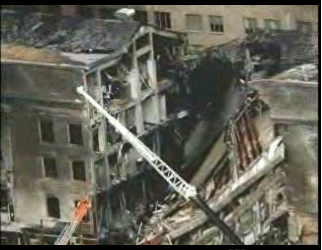 Certains diront " mais où est passé l'avion du vol régulier et ses passagers ? Où sont passés les terroristes ? Y en avait-il ? ". A cela je répondrai : des gens qui auraient été capables de tuer de sang froid 3000 de leurs compatriotes seraient-ils arrêtsé par un détournement d'avion de ligne, détruit au sol après atterrissage sur une base militaire, passagers et éventuels terroristes tués de n'importe quelle manière possible. Tous les scénarios peuvent être envisagés. L'avion de ligne est détourné, un avion militaire spécialement équipé *et sans pilote *prend sa place, guidé par une radiobalise installée préalablement dans les tours ( ou, comme cela avait été suggéré, dans la tour n°7 servant de PC de contrôle ).
