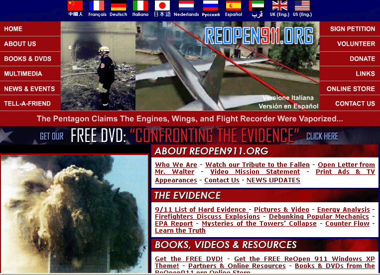 En tant que partie de l'effort continu pour éduquer et informer le public, ReOpen911 a produit et distribué un DVD éducatif de 2 heures intitulé "Confronter l'Evidence" complètement gratuit. Cliquez ici, pour commander le DVD gratuit "Confronter l'Evidence." Des extraits et images video de ce DVD sont disponibles sur le Multimédia de ce site.