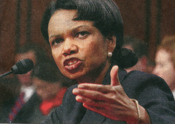 Ajoutons la singulière déclaration faite par Condolessa Rice, 50 ans, conseillère du président Goerges W Bush lors que son discours devant la commission des affaires étrangères au Sénat à Washington le 18 janvier 2005.