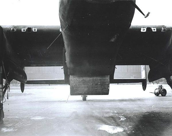 **Bombardier Lancaster muni de sa bombe cylindrique de trois tonnes. **