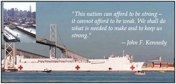**Navire hôpital américains d'une capacité d'accueil de mille lits, entièrement équipé. **