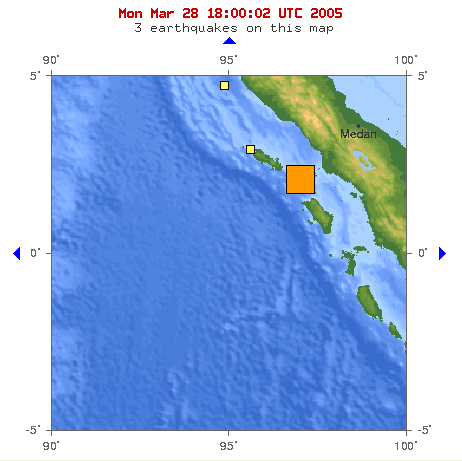 • Un séisme de magnitude 8,5 a eu lieu au large de Sumatra le 28 mars 2005, trois mois après le tsunami de décembre 2004.