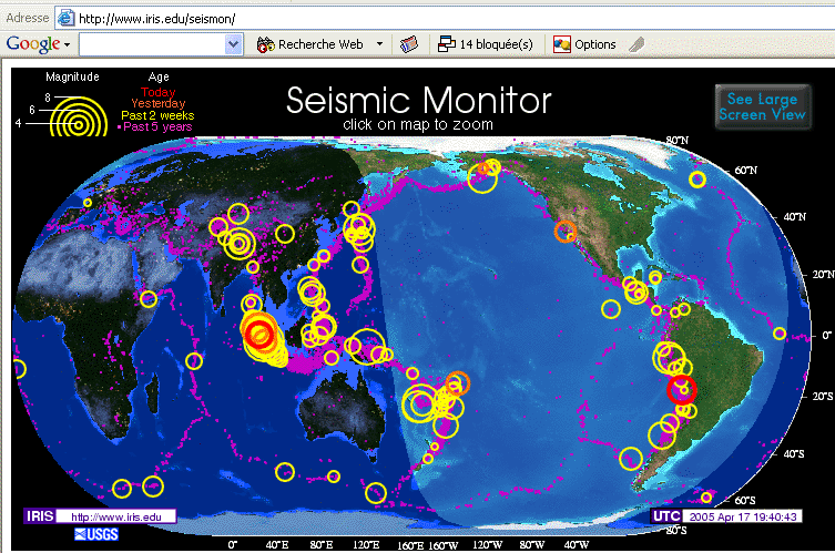 Activité sismique mondiale 17 avril 2005