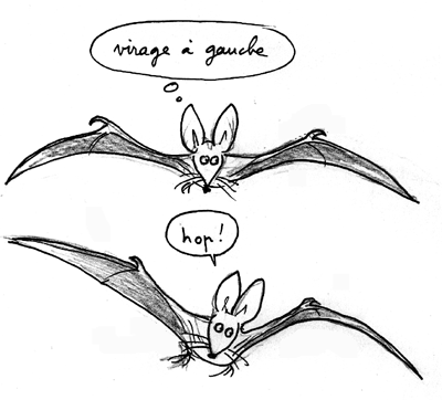 ...Revenons à la chauve-souris, qui possède aussi des ailes souples, à bord de fuite libre, qui sont simplement fixées sur le bras et l'un des doigts, hypertrophié, de l'animal. Que fait-elle quand elle veut virer ? Elle étend simplement l'une de ses ailes tandis qu'elle replie légèrement l'autre. Mêmes effets sur les bords de fuite. Pas besoin d'empennage vertical.