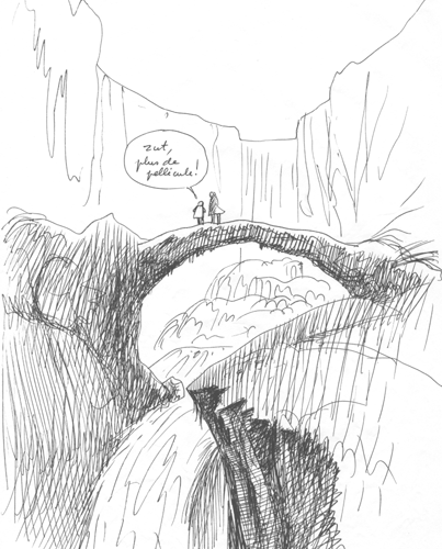 Ca n'est pas pour me vanter, mais depuis mon adolescence, avec le dessin j'ai toujours pu trouver ma pitance dans des nombreux coins du monde, en m'y faisant des amis. Si vous me lâchiez en plein désert de Mongolie je pense que j'arriverais, grâce à ça, à me faire des copains en dessinant les membres d'une famille et leur yourte. Convenez que ce dessin avait pas mal de gueule. J'étais en train de l'achever quand j'entendis une voix derrière moi. C'était le propriétair du bateau qui, comprenant que je faisais partie de la bande de Français qui avaient débarqué, m' aborda en anglais :