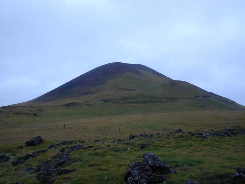 L'île est dominée par un volcan, l'Helgafell. C'est un volcan bien modeste, à côté de l'Hekla qui se trouve au sud de l'Islande.