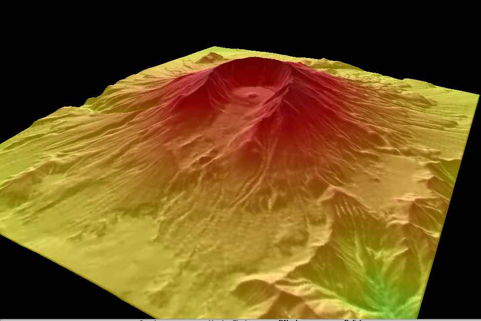 Il se trouve qu'un des habitués de ce site, Frédéric Beaumont, a travaillé sur la géograpgie du Mont Saint Helens, en produisant les deux images de synthèse suivantes. Il nous indique que le sommet du volcan a été arasé sur plusieurs centaines de mètres.