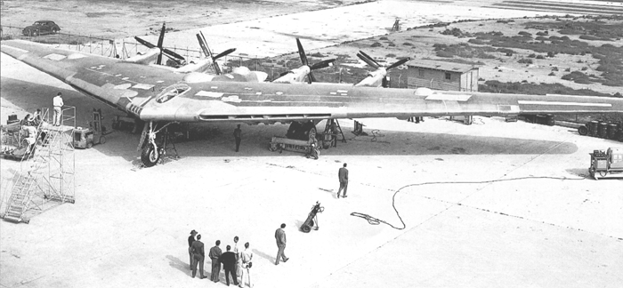 アメリカが原子爆弾を保有した瞬間から、潜在的な敵国であるソ連の本土に打撃を加えることができる大陸間輸送手段の確保という課題が浮上した。当初、1945年当時アメリカは、広島と長崎への爆撃を実施した「509爆撃連隊」が所属する「ストラトフォートレスB-29」を保有していた。しかし、ソ連本土への爆撃を実行するには、その性能は不十分だった。このためノースロップ社は、非常に長距離飛行が可能で、かつレーダーにほとんど検出されない(=低可視性)という特徴を持つ「飛行翼」の開発を進めることになった。ジャック・ノースロップは、1939~1945年の第二次世界大戦前からこのプロジェクトを推進していた。最初の機体は、逆回転プロペラを装備したXB-35Aであり、1946年6月26日にアメリカのエドワーズ空軍基地で初飛行を果たした。