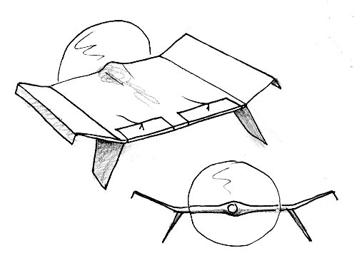 놀라운 점은 이 작은 기체가 실제로 몇 초간 단독 비행을 할 수 있다는 것입니다. 조종자는 리모컨의 핸들을 놓아야 합니다. 아래는 기억에 의거해 그려진 스케치이며, 기체는 3/4 뒷면에서 보여줍니다. 스팬: 19.5cm. 무게: 56g. 비행 시간 10분 이상. 내장형 비디오 카메라. 이 모델로 2002년 마이크로드론 트로피를 수상했습니다. 조종은 두 개의 엘레바터를 사용해 이루어집니다.