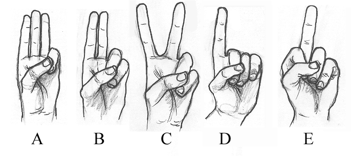 Ce dont je me souviens, c'est du salut scout. Voit sur la planche ci-après le dessin A.