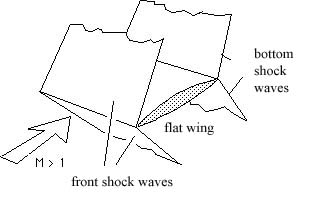 With such device it was possible to cancel the front shock wave at the vicinity ot a sharp leading edge which showed that a shock system could be avoided. This changed drastically the problem of the hypersonic flight. Now the goal was to cancel and shock around a flat wing, wich implied to keep the Mach lines parallel :