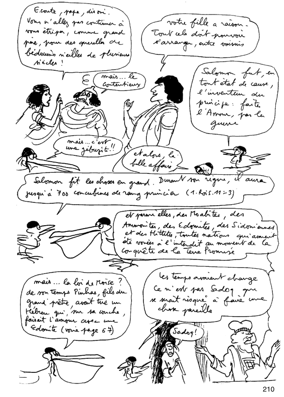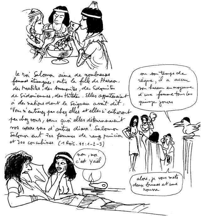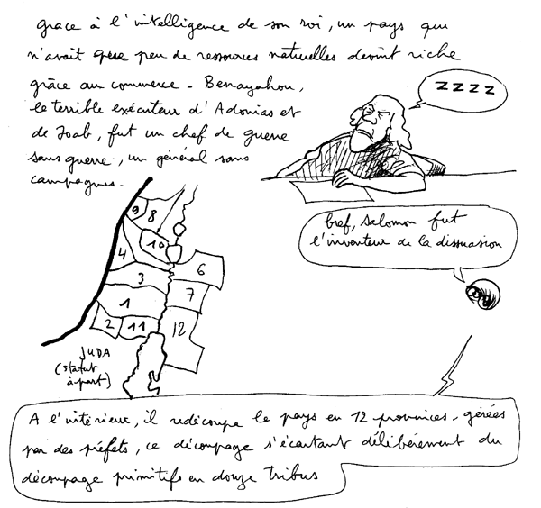 Salomon trouve une solution très efficace pour juguler les conflits inter-ethniques. Il épouse à tour de bras les filles de ses voisins, à commencer par celle du pharaon, son puissant voisin.