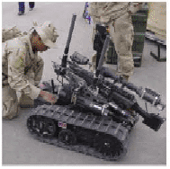 Ces petits robots ont déjà été utilisés en Irak. Leur robustesse est devenue légendaire. l'un d'eux, s'étant détaché du toit d'un véhicule est tombé dans un fleuve. Les soldats ont pu le récupérer en le manoeuvrant, en immersion, par télécommande. On peut considérer que ces mini-robots ne représentent que l'avant-garde d'une panoplie déjà certainement très impressionnante. Disons que dans les laboratoires existent à coup sûr des machines autrement plus sophistiquées. Ce qui représentent d'ailleurs un point de supériorité absolue dans ces nouvelles armes n'est pas tant leur calibre ni la panoplie des gadgets qu'elles peuvent déployer mais une menace autrement plus grave qui plane, celle de l'émergence d'une "robotique adaptative" , autrement dit d'une " I.A. " ou intelligence artificielle ( capacité conférées à des machines de se reprogrammer elles-mêmes ). J'ai abordé ce thème sous la forme d'une fiction dans mon livre " l'Année du Contact " (Albin Michel 2004 ). Voir sur ma page d'accueil. Peu d'échos, échoi médiatique nul, ventes faibles. Et pourtant un livre qui contient les éléments clés de cette intelligence artificielle qui, hélas, quand elle émergera, deviendra un instrument de domiunation absolue aux mains des humains de la pire espèce.