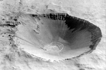 On voit nettement sur cette image que le cratère présente des bord abruts, qu'on retrouvera plus loins sur une photo récente
