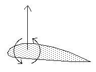 ...Quand le pilotage assisté par ordinateur est apparu, sur les Airbus français, on a cherché à économiser du carburant en utilisant pour contrer le couple piqueur de l'aile, non pas un contre couple fourni par l'empennage, mais le déport du centre de gravité de l'avion (par déplacement vers l'arrière d'une certaine masse de carburant). On obtient alors schématiquement ceci :