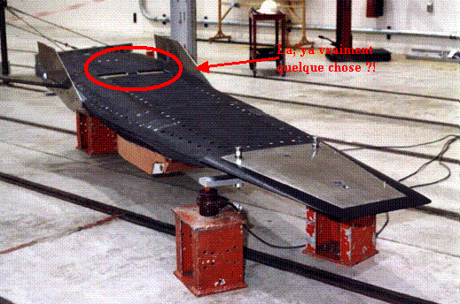 Ainsi, au lieu de nous présenter une maquette de vol, les Américains nous montreraient des images vieilles de 20 à 40 ans ou la préfiguration d'Aurora subirait, sous la forme d'une maquette assez primitive, des tests destinésà dimensionner la structure interne de cette-ci, en vue effectivement d'un test de mise en vitesse hypersonique, à Mach 7, en plaçant l'objet en tête d'un booster. Même lorsqu'on nous montre des films montrant un B-52 au décollage, portant l'ensemble Booster plus maquette, la question n'est peut-être de se demander si les Américains peuvent dépenser de l'argent pour mettre en oeuvre un tel programme de désinformation, mais ... de quand datent ces films. Ultérieurement, après un programme d'essai réussi, le X-43A, fixé en tête de son booster et sous l'aile du B-52 sera peut être "présenté à la presse", avec discours des "responsables", évoquant "les grandes lignes du programme". Il s'agira peut-être, on peut l'espérer, d'une maquette mieux finie, avec des ailerons verticaux qui ne seront pas de simples bouts de rôle découpés. Le cas échéant l'entrée d'air de la maquette sera bouchée par un cache, de même que la sortie de ses "scramjets". Il y aura sûrement un obturateur dans le col de la tuyère du booster, tout simplement parce que celui-ci sera... factice (il n'y aura alors pas de bloc de poudre à l'intérieur).