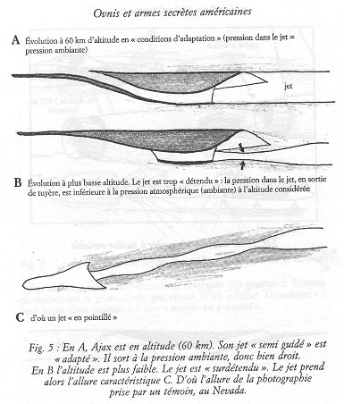 J'ai écrit un livre où j'ai dit ce que je pensais de tout cela. Il n'y a pas eu de débat, nulle part. A part par des ufologues scientifiquement incompétents comme Gildas Bourdais, mes écrits ont été ignorés. J'ai même lu, à propos de la fameuse photo prise il y a 20 ans et plus à Groom Lake, qui montre un sillage en pointillé, qu'un "expert de l'ONERA" (Office National d'Etudes et de Recherches en Aéronautique) concluait à une combustion pulsée, en précisant que ce régime serait fort inconfortable pour d'éventuels passagers ou pilotes. Je crois me rappeler que j'avais donné une autre explication à ce phénomène dans mon livre : que la tuyère semi-guidée de l'engin ne travaillait pas "à son altitude d'adaptation", ce qui créait, un classique, une succession de "noeuds" et de "ventres" dans le jet de sortie, avec ondes de choc.