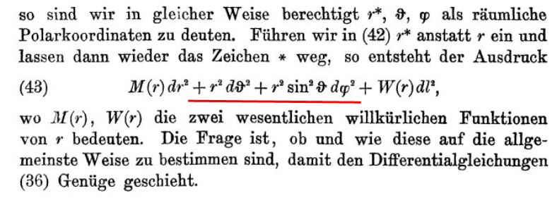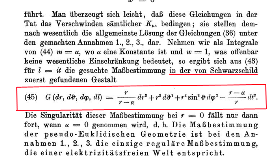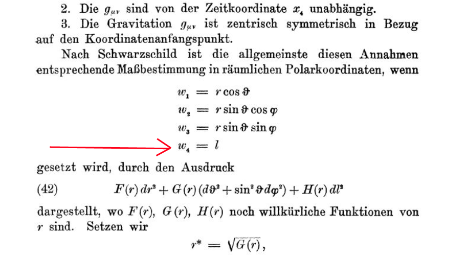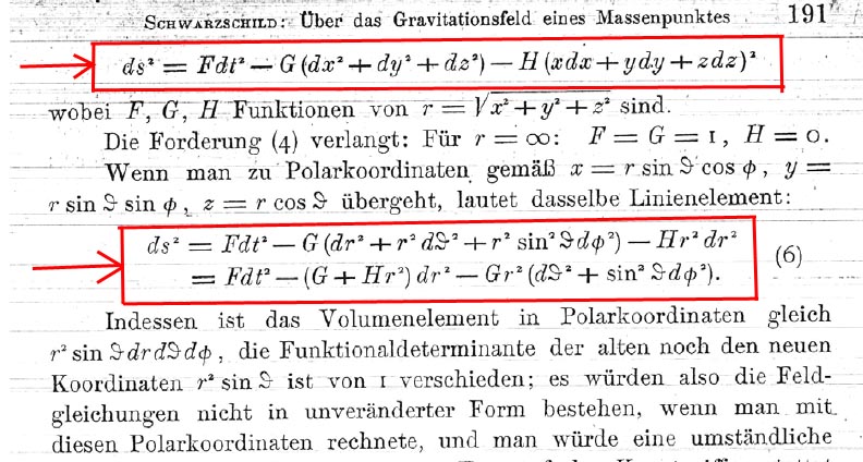 This writing focuses the attention on the tangible, real part of space-time: space (affected by three plus signs). He says he obtains Schwarzschild's result (except for the inversion of signs) which should then be written: